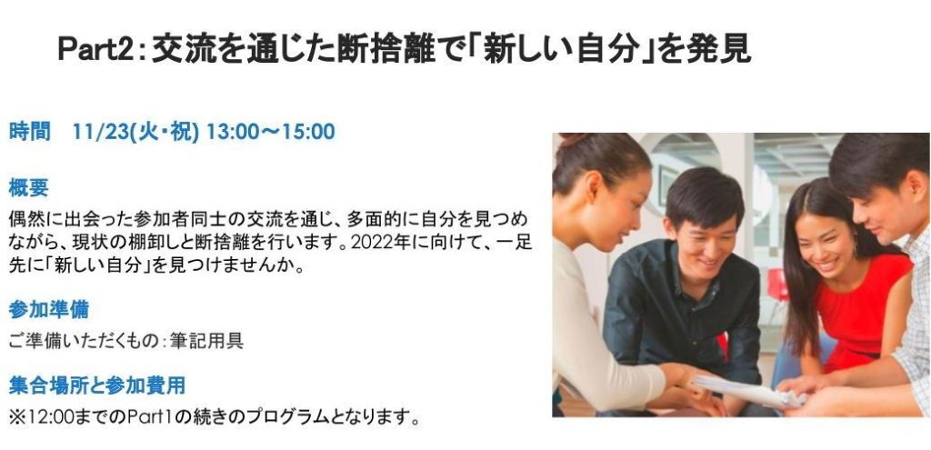 【カフェ】【食】【断捨離】【町歩きチームビルディング】【筋トレ】など、「提供者の個性×鎌倉の魅力」の掛け合わせが魅力のイベントを、期間中(11/22-11/26)日替わりで開催。